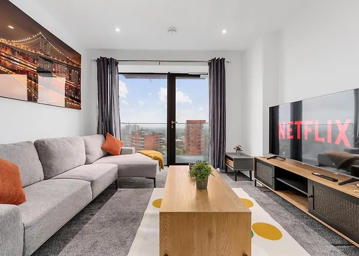 2-slaapkamer Modern Luxurious Central Apartment ligt op 3-km afstand van het City of Manchester 'Etihad' Stadium en biedt draadloos internet voor zaken of vrije tijd. Het 2-badkamer appartement ligt een paar momenten van Hidden at Downtex Mill en is uitgerust met schoonmaakvoorzieningen zoals een wasmachine.
